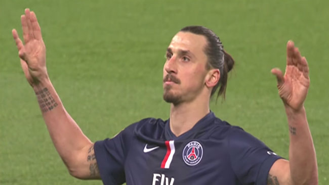 Zlatan firar sitt 99:e mål för Paris SG. Foto: Faksimil Youtube
